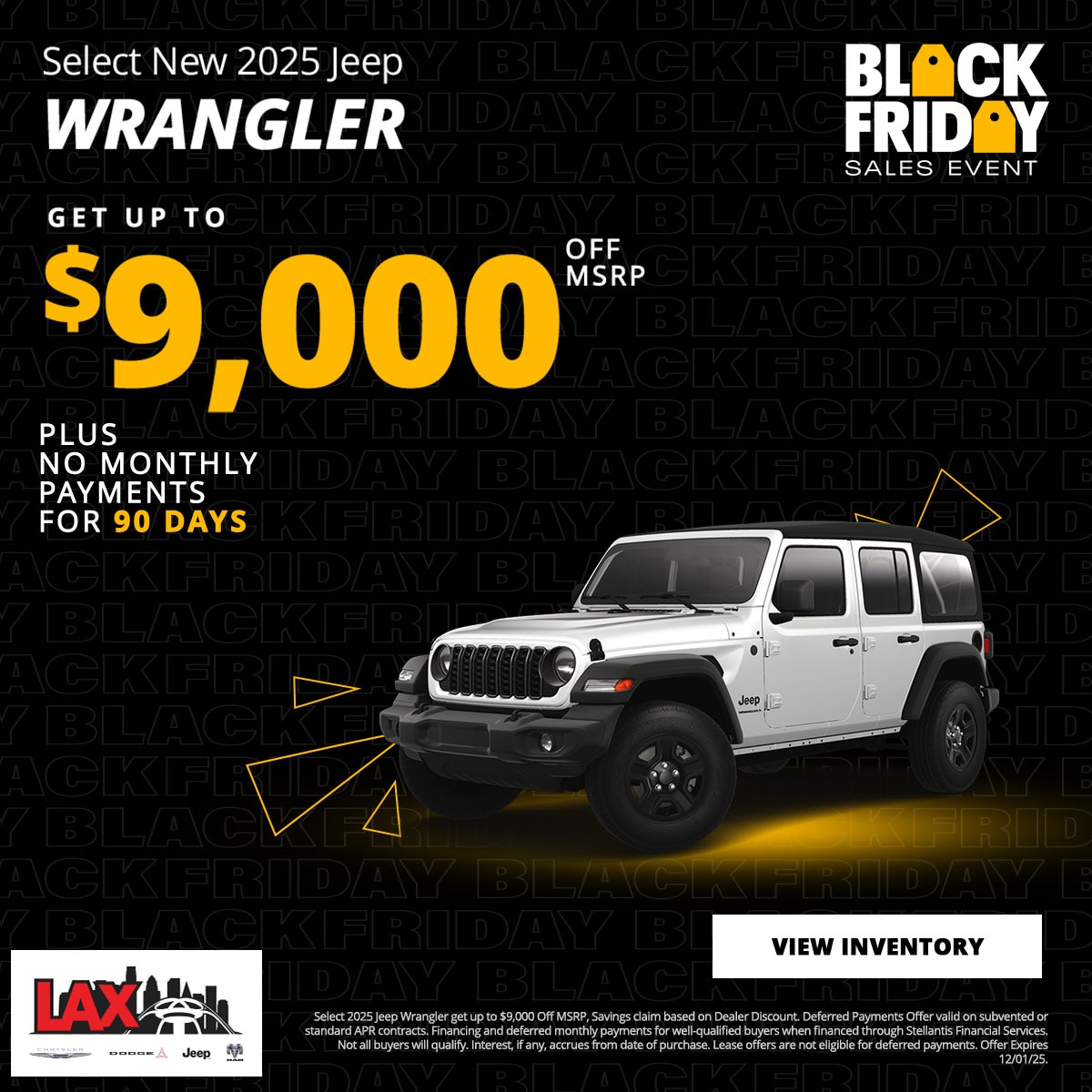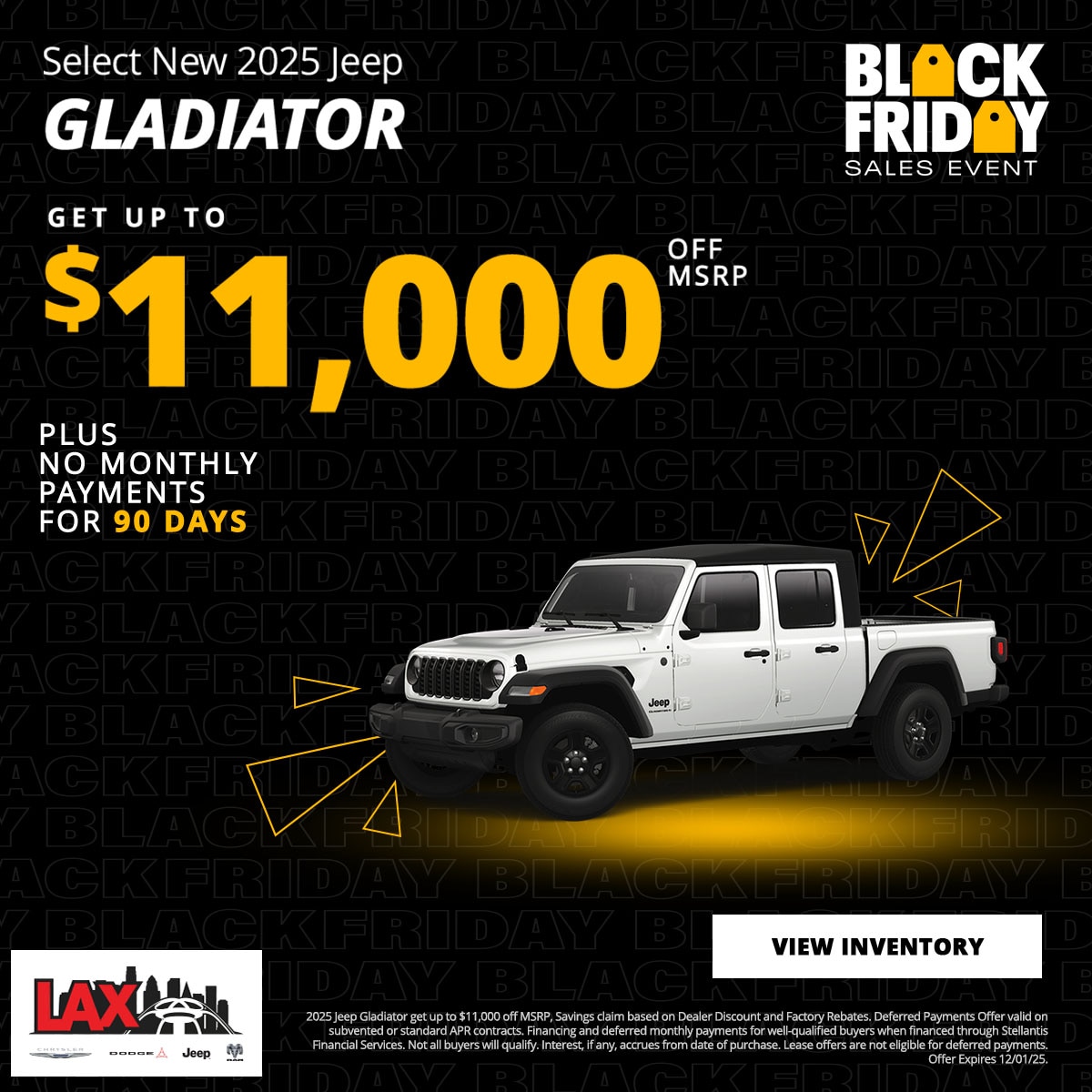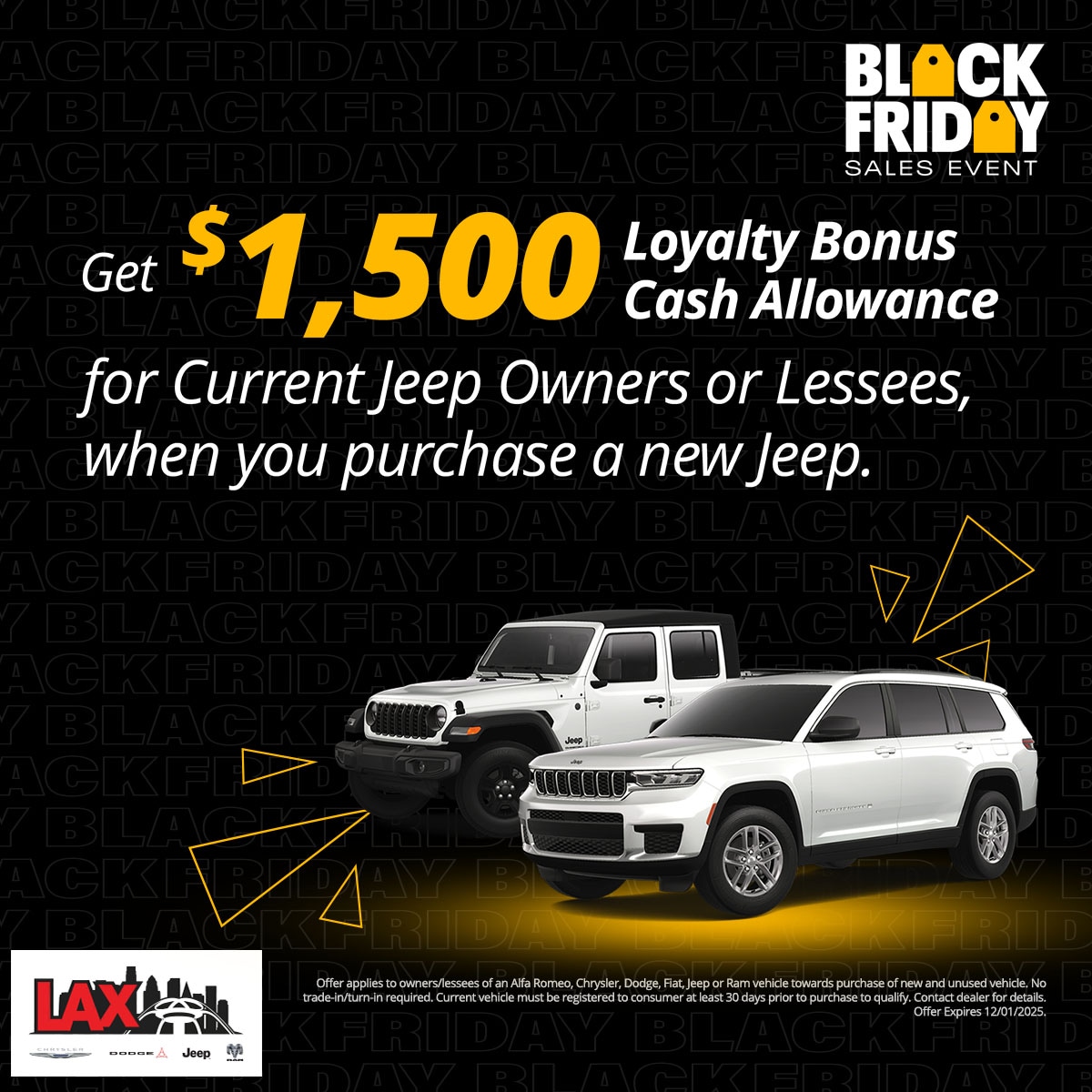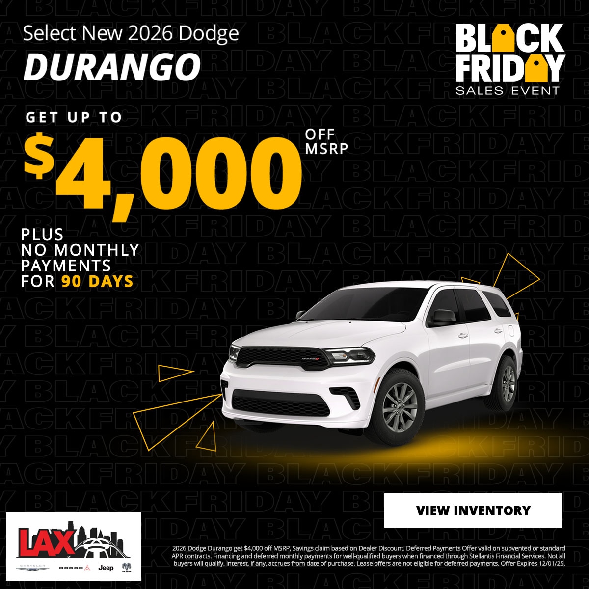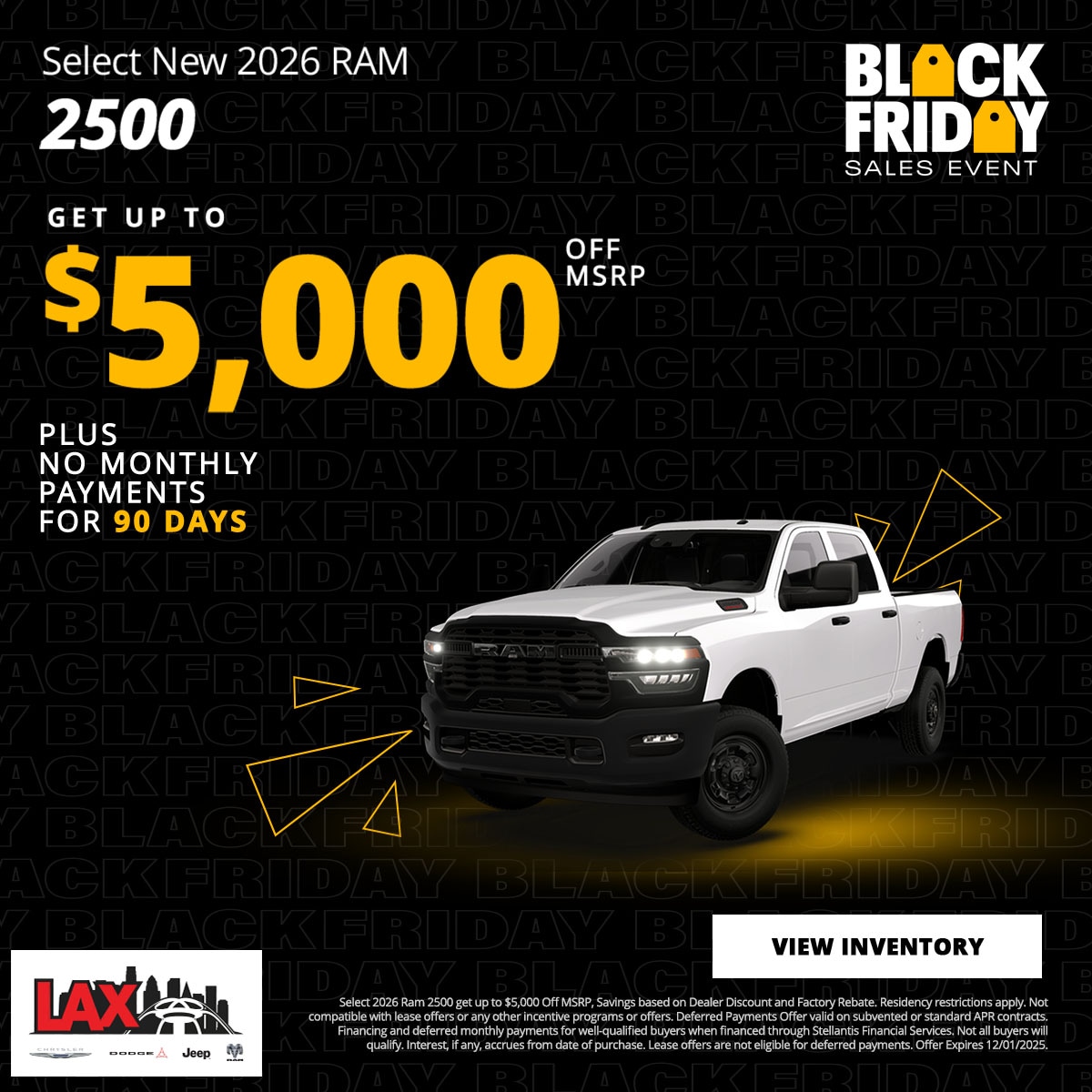 At LAX Chrysler Dodge Jeep Ram (CDJR), we are committed to providing our customers with exceptional value through our exclusive new vehicle specials. Our current offers are designed to make owning a new Chrysler, Dodge, Jeep, or Ram more accessible and affordable. Explore our latest deals below and find the perfect vehicle that suits your lifestyle and budget.